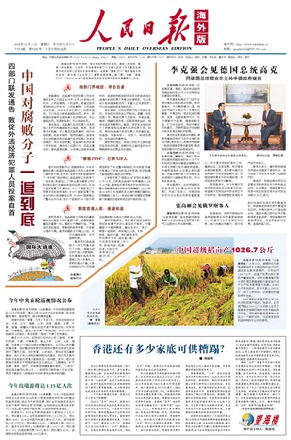 第四期超級稻畝產(chǎn)突破1000公斤報道 人民日報海外版